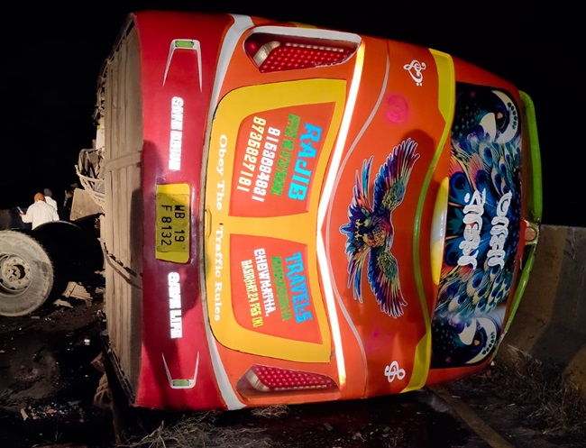 Ghatshila News झारखंड के घाटशिला थाना क्षेत्र में देर रात 60 यात्रियों से पलटी एक बस अचानक पलट गई। बस पलटने के बाद चीख-पुकार मच गई। लोग मदद के लिए आवाज लगाने लगे। बस हावड़ा से नेतरहाट जा रही थी जहां यात्री नव वर्ष का जश्न मनाने जा रहे थे। पुलिस ने तुरंत मदद की और घायलों को अस्पताल पहुंचाया।