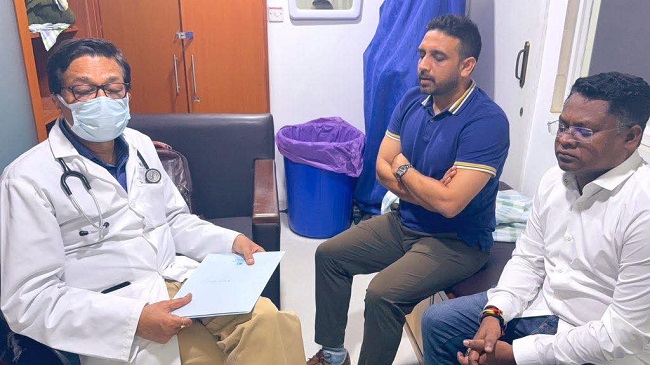 मंत्री के पुत्र और झामुमो प्रवक्ता कुणाल को रिपोर्ट की जानकारी देते चिकित्सक।