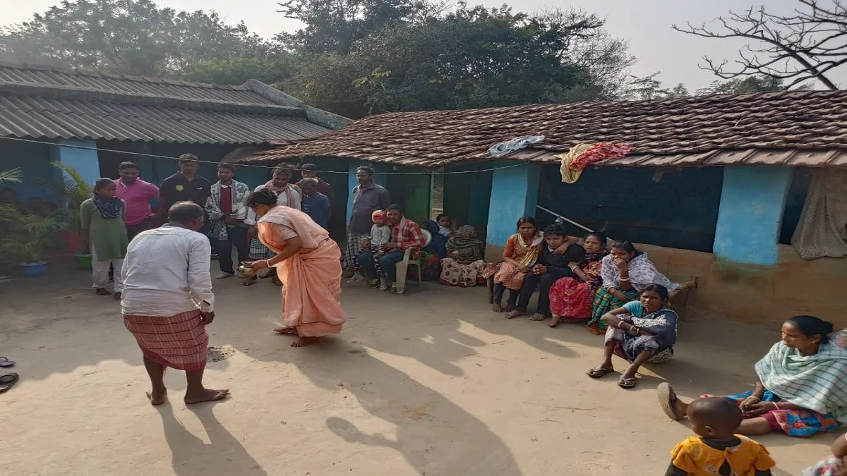 मृतका ज्योतिका हेंब्रम के घर के बाहर रोते-बिलखते परिजन।