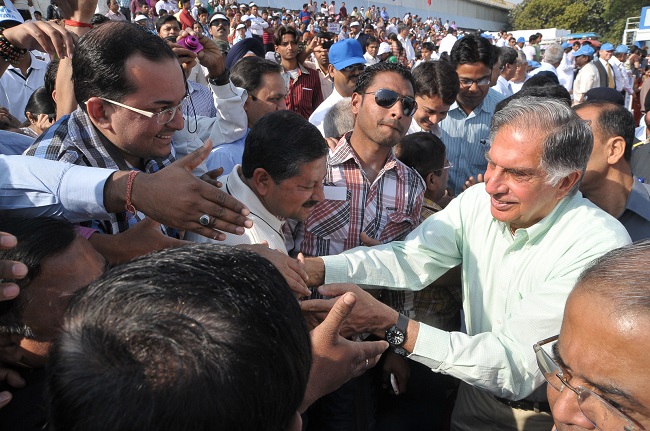 जमशेदपुर में 2012 में फाउंडर डे के दौरान आम लोगों से मिलते रतन टाटा।