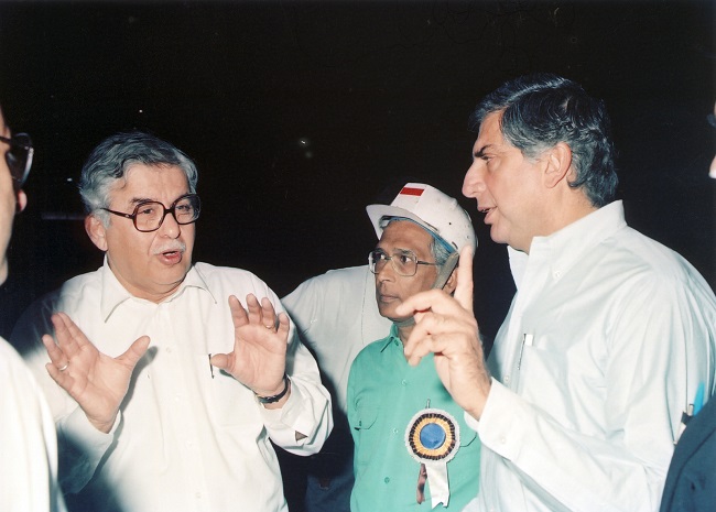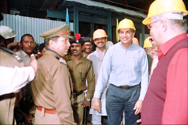 जमशेदपुर में वर्ष 1992 में जी ब्लास्ट फर्नेस के शुभारंभ के दौरान तत्कालीन एमडी जेजे ईरानी के साथ चर्चा करते रतन टाटा।