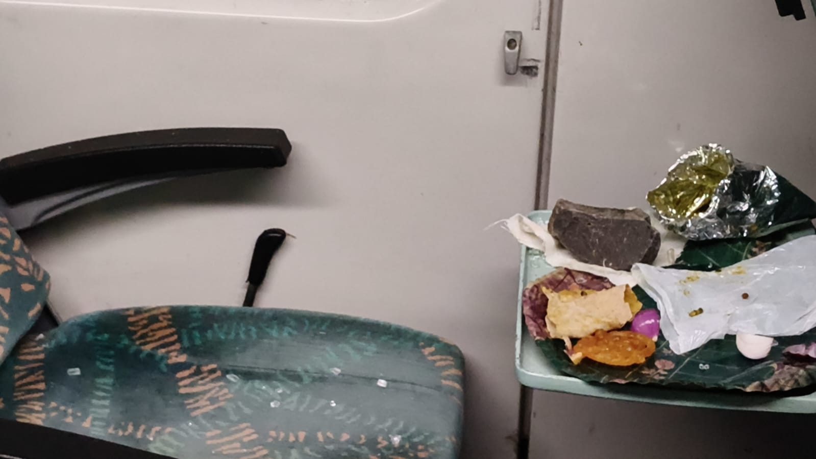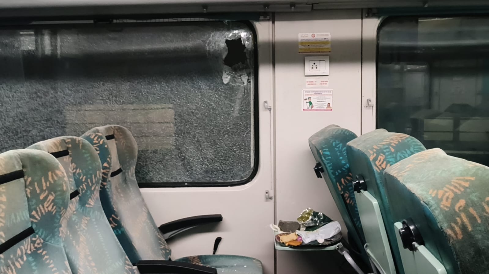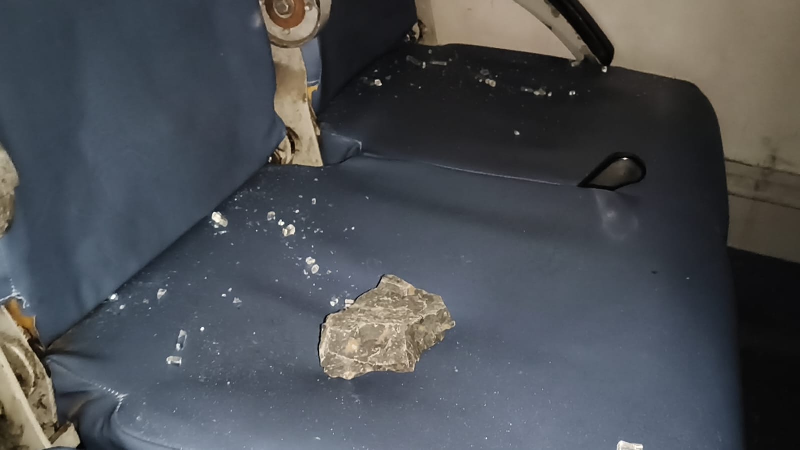 - तेज आवाज के साथ पत्थर खिड़की का कांच तोड़ते हुए अंदर घुसा और सीधे नाश्ते की प्लेट पर ही गिरा। इससे यात्री पूरी तरह से सहम गया और वे तुरंत अपनी सीट से हट गए।