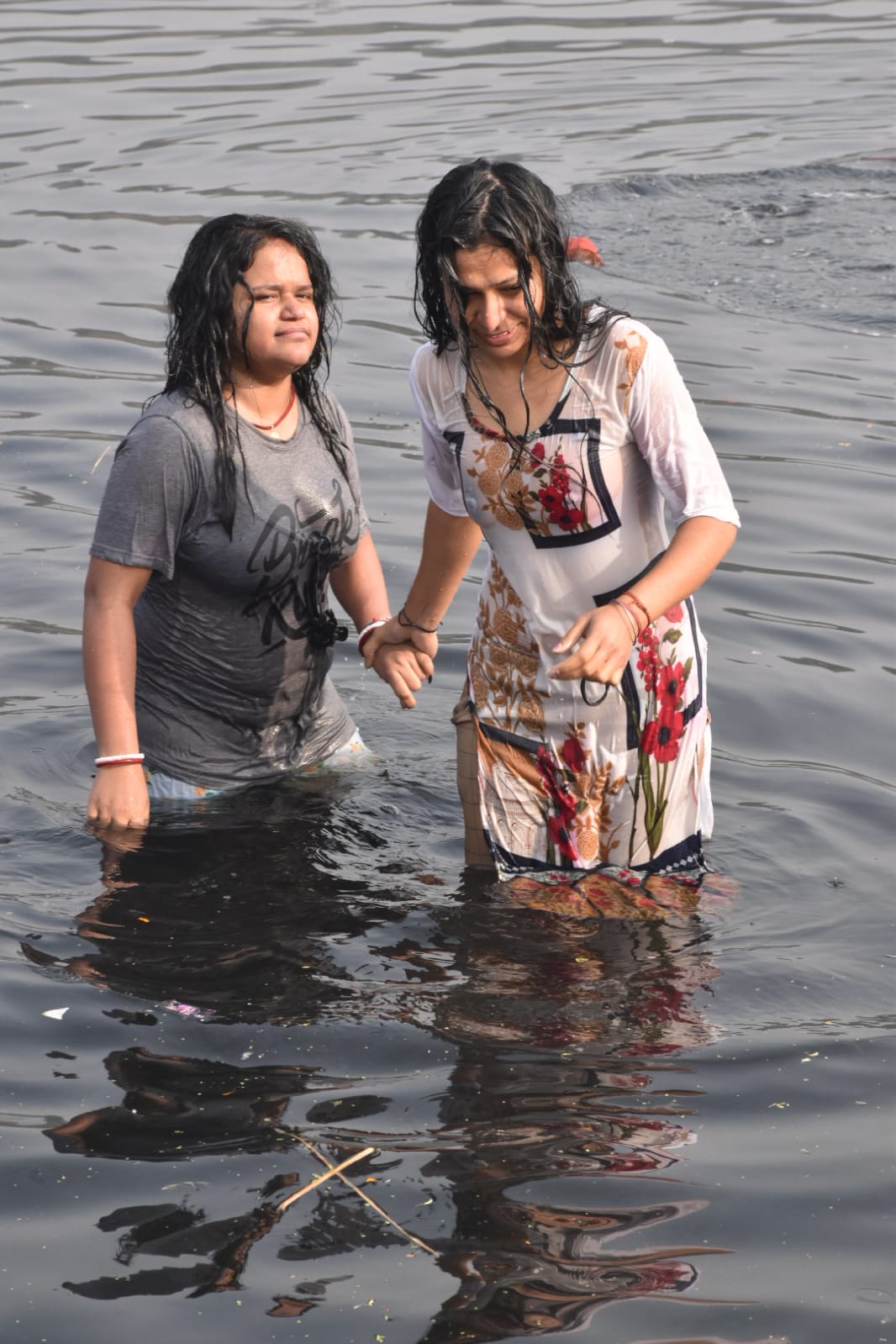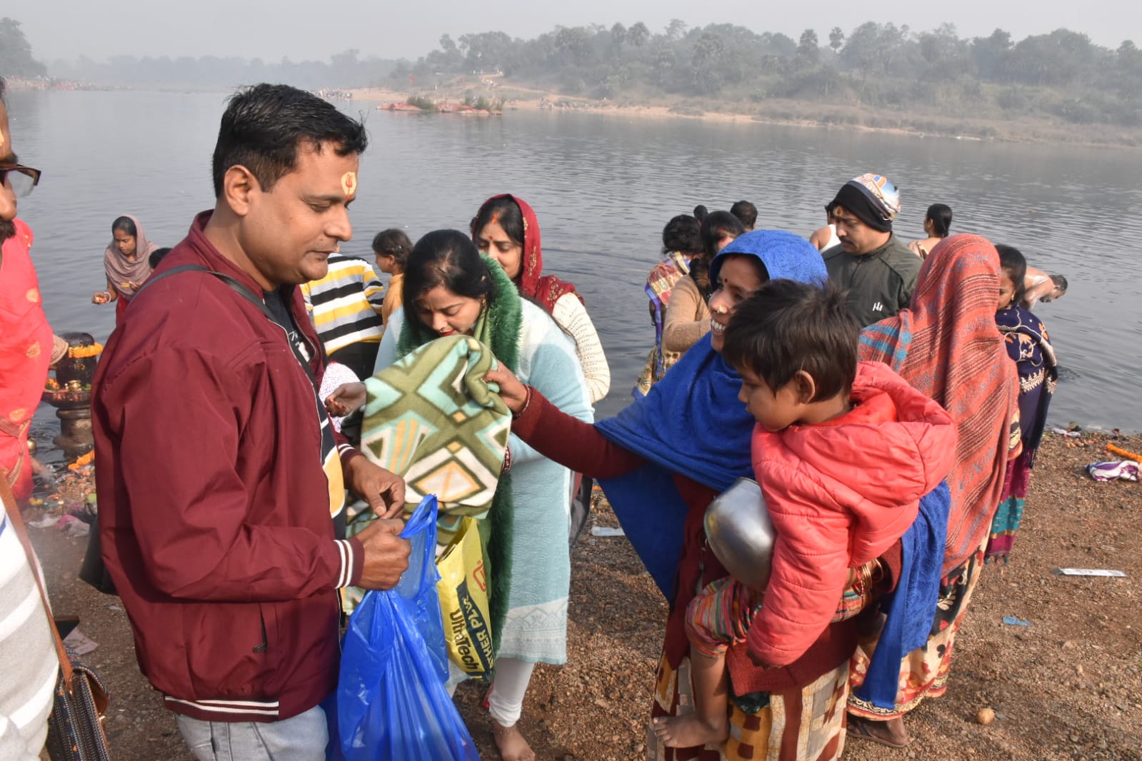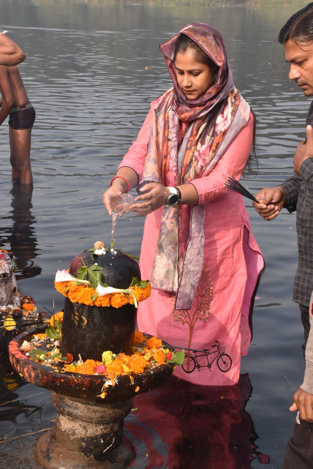 नदी में डुबकी लगाकर लोग कर रहे पवित्र स्नान