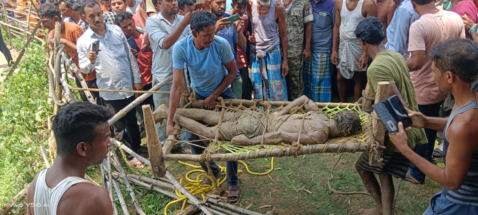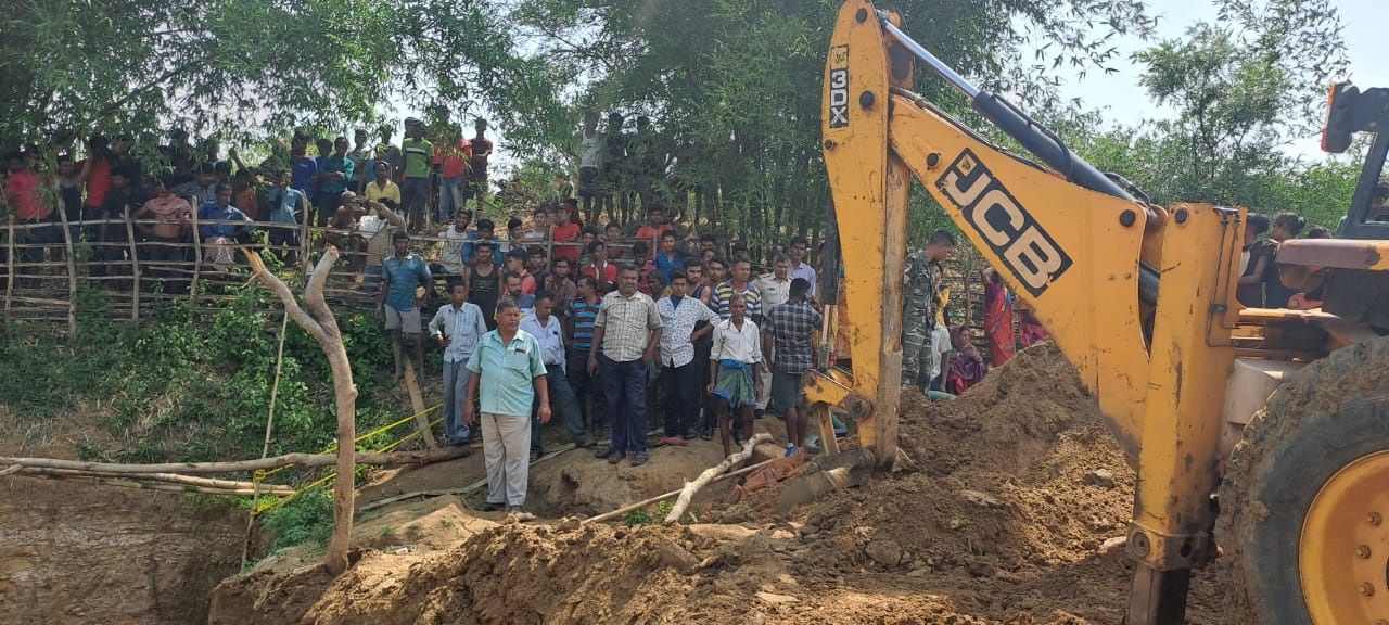 मौके पर मौजूद लोगों ने बताया कि मनरेगा योजना के मद से इस कुएं का निर्माण कार्य चल रहा है। सुबह के समय दो मजदूर साधन माल व उत्तम घोष नीचे कुएं की खोदाई के लिए गैंता-कुदाल लेकर उतरे थे।