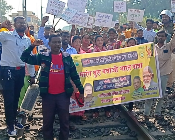 Jamtara: सरना धर्म कोड और मरंगबुरू पर अधिकार को लेकर रोकी ट्रेनें, आदिवासियों ने कहा-जारी रहेगा यह आंदोलन