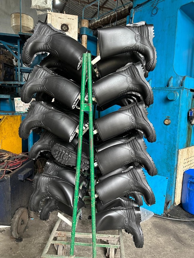 डक बैक (इंडिया) लिमिटेड कंपनी में तैयार गम बूट।