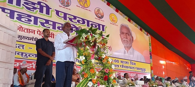 वे गुरुवार को पाकुड़ के बाजार समिति मैदान में आयोजित मांझी परगना महासम्मेलन को संबोधित कर रहे थे। पूर्व मुख्यमंत्री चंपई सोरेन ने कहा कि संताल परगना में आदिवासियों की जमीन लूटी जा रही है। बांग्लादेशी घुसपैठ के कारण कई गांव ऐसे हैं, जहां आज कोई आदिवासी नहीं बचा।