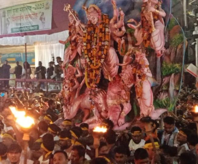 West Singhbhum News: मशाल जुलूस के साथ नम आंखों से दी गई मां दुर्गा को विदाई, Photo में देखें मनमोहक दृश्य