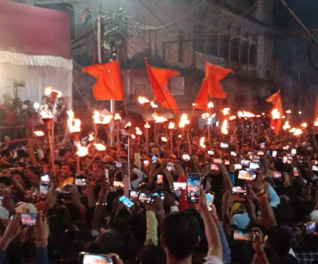 (पवन चौक में आदि दुर्गा पूजा समिति पुराना बस्ती का मशाल जुलूस)