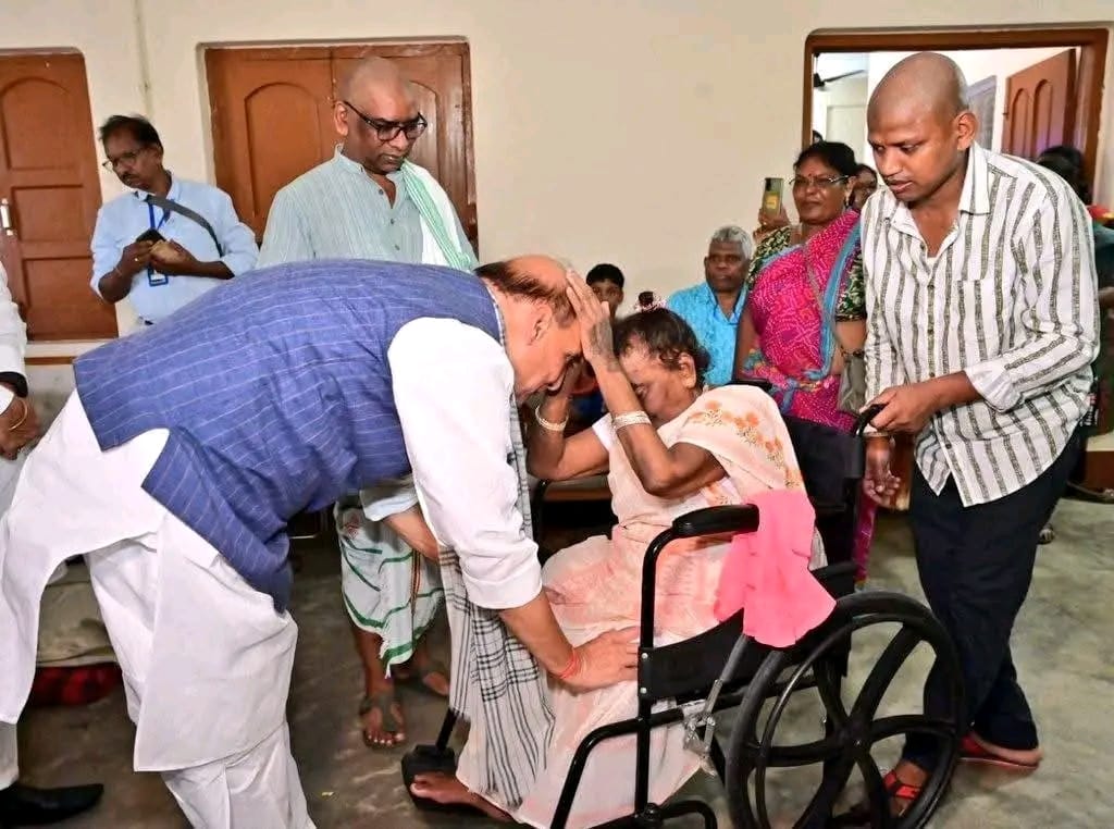 रक्षा मंत्री राजनाथ सिंह ने नेमरा में मुख्यमंत्री हेमंत सोरेन की मां रूपी सोरेन का चरण स्पर्श करके आशीर्वाद लिया।