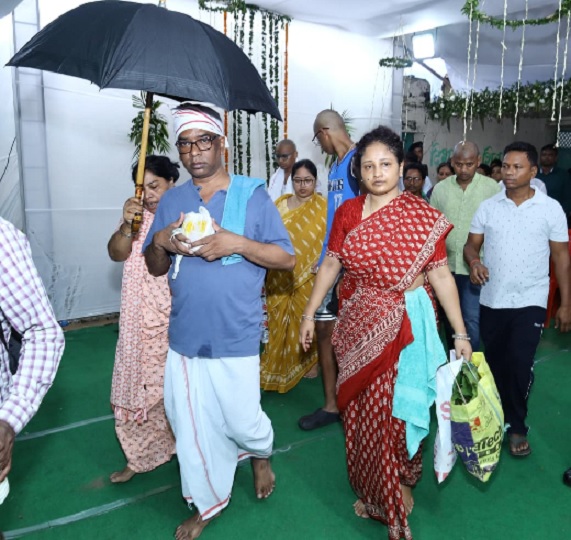 गमगीन माहौल में मुख्यमंत्री हेमंत सोरेन दिशोम गुरु शिबू सोरेन की अस्थि-कलश को लेकर पैतृक गांव नेमरा से रजरप्पा स्थित दामोदर-भैरवी संगम घाट पहुंचे।