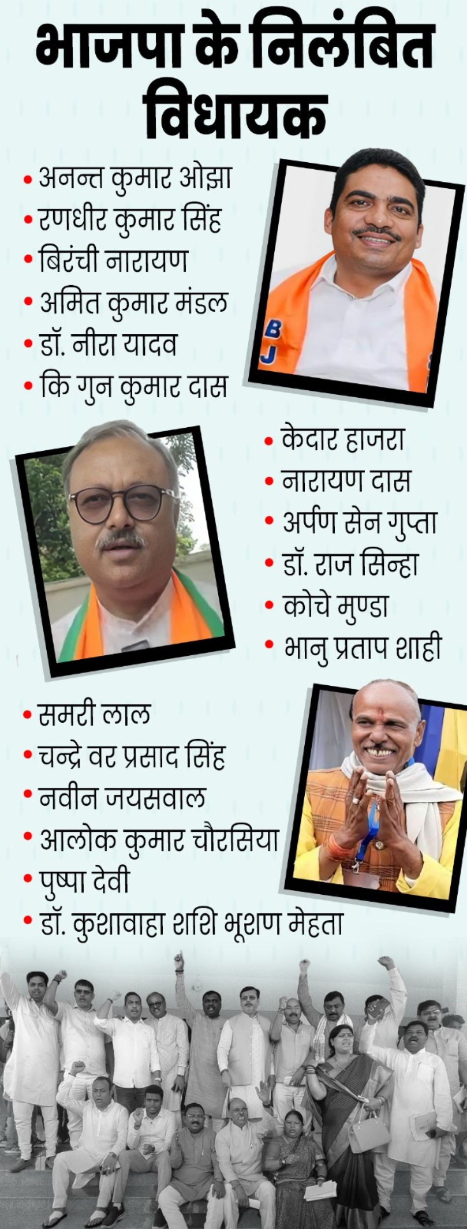 भाजपा के 18 विधायकों को दो अगस्त दोपहर दो बजे तक के लिए निलंबित कर दिया। हालांकि, निलंबित किए गये विधायकों में नेता प्रतिपक्ष अमर कुमार बाउरी शामिल नहीं हैं।