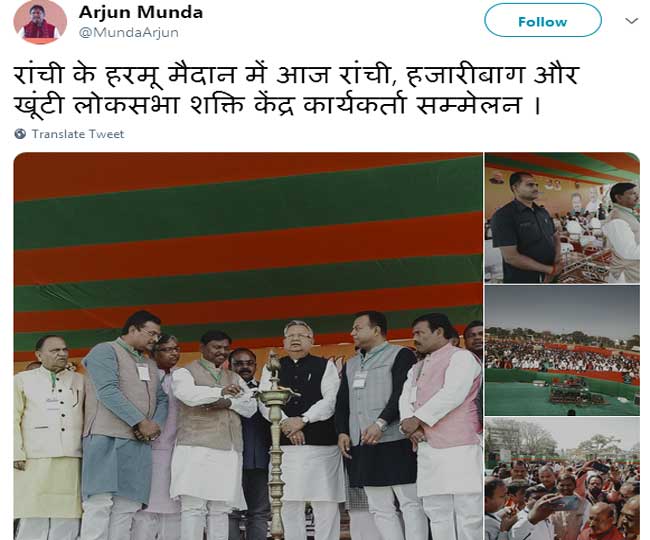 रांची, राज्‍य ब्‍यूरो। राजधानी रांची के हरमू में आयोजित भारतीय जनता पार्टी के शक्ति कार्यकर्ता सम्‍मेलन में भाजपा कार्यकर्ता पूरे जोश में हैं। सम्मेलन में छत्तीसगढ़ के पूर्व मुख्यमंत्री रमण सिंह भी पहुंचे हैं। पूर्व मुख्यमंत्री अर्जुन मुंडा ने कार्यकर्ताओं को संबोधित करते हुए कहा कि एक बार फिर से प्रधानमंत्री नरेंद्र मोदी को 2019 में प्रधानमंत्री बनाने का लक्ष्‍य हम सबको मिलकर पूरा करना है। सीएम रघुवर दास ने अपने ट्वीट में लिखा- रांची में आयोजित शक्ति केंद्र कार्यकर्ता सम्मेलन में खूंटी, हजारीबाग और रांची से आए साथियों का हार्दिक अभिनंदन।