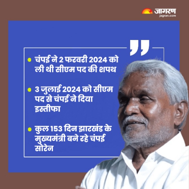 हेमंत के इस्तीफे के बाद करीब दो दिन की सियासी हलचल के बीच 2 फरवरी, 2024 को चंपई सोरेन ने सीएम पद की शपथ ली। वह 3 जुलाई 2024 तक झारखंड के मुख्यमंत्री बने रहे।