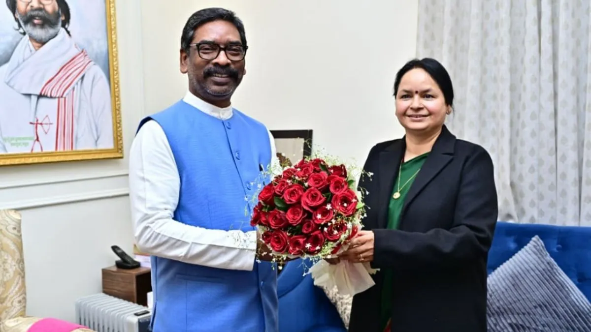 सीएम हेमंत सोरेन को नववर्ष की बधाई देती राज्य निर्वाचन आयुक्त अलका तिवारी। फोटो