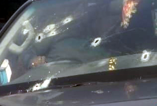 वाहन पर गोली का निशान।