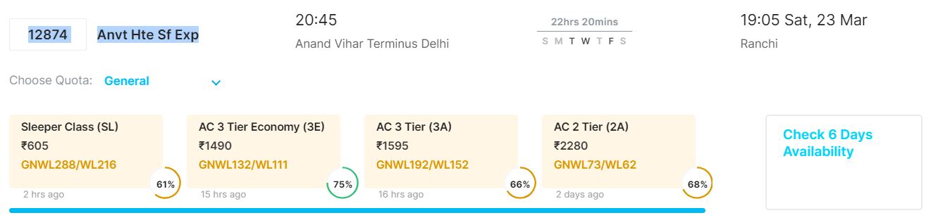 - आनंद विहार-हटिया सुपरफास्ट एक्सप्रेस (12874 Anvt Hte Sf Exp)