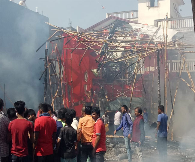 दुर्गा पूजा पंडाल में तीन दिन में दूसरी बार लगी आग, आक्रोशित लोगों ने दमकल कर्मियों को पीटा