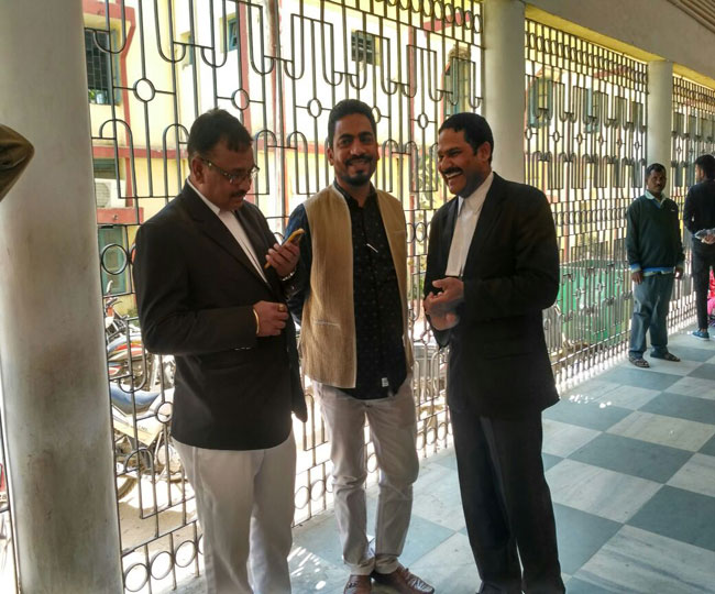 कोर्ट परिसर में पूर्व मंत्री भानु प्रताप शाही।