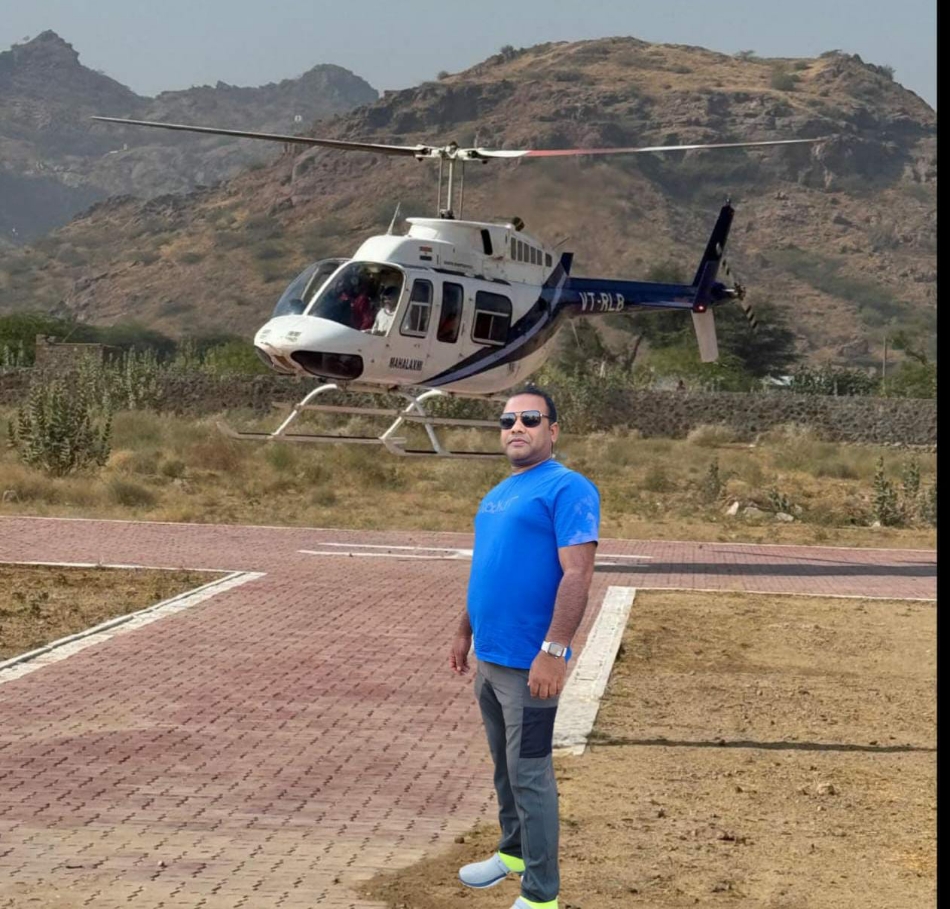 हेलीकॉप्टर के साथ युवराज ग्रुप एंड कंपनी लिमिटेड के मुख्य कार्यकारी अधिकारी राजीव कुमार।
