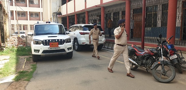 झारखंड के पूर्व मुख्यमंत्री हेमंत सोरेन बेल होने के बाद सिविल कोड पहुंचे एसएससी व अधिकारी।