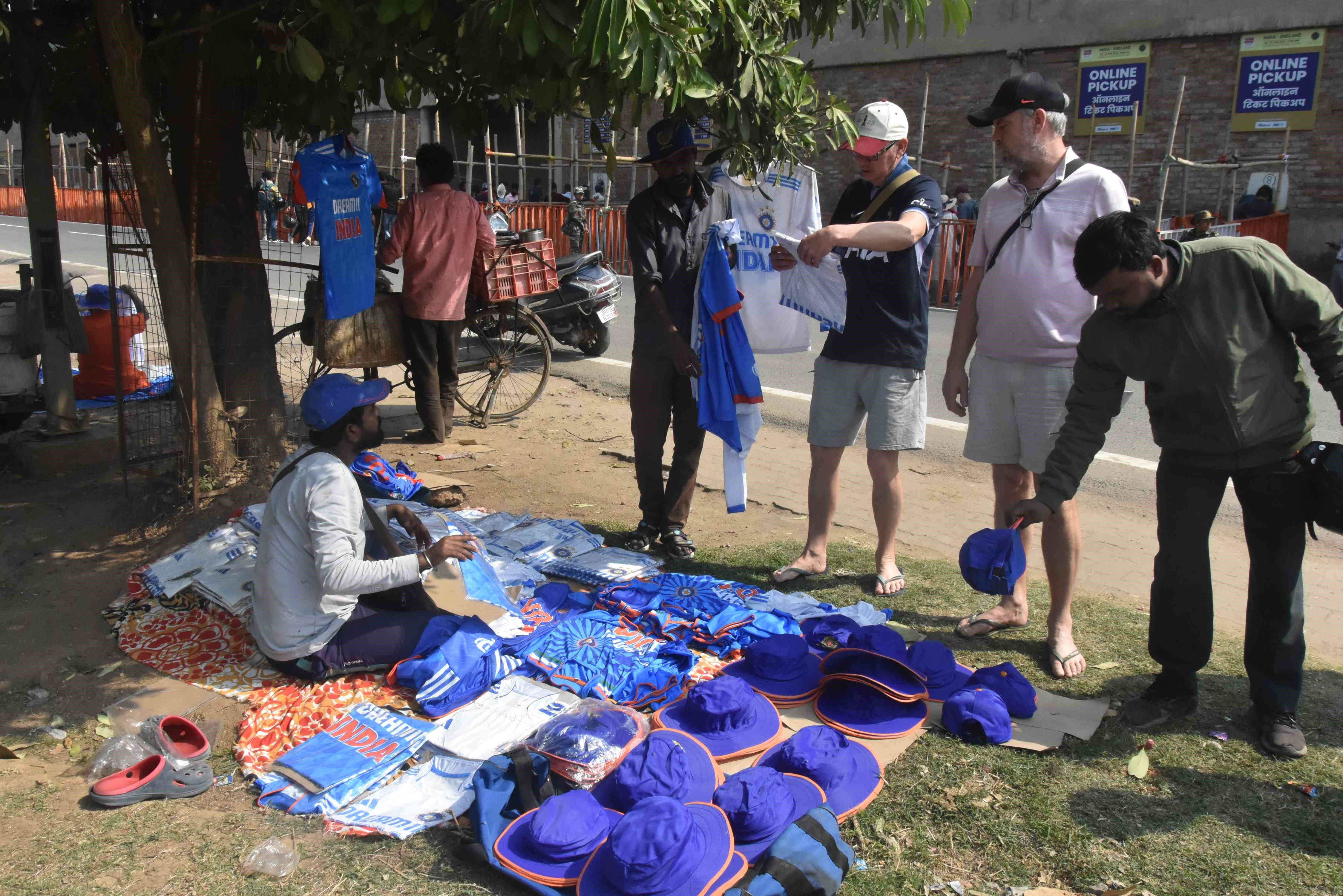 स्टेडियम के बाहर दर्शकों के लिए टीम इंडिया के खिलाड़ियों की जर्सी की भी बिक्री हो रही है। प्रशंसकों में सबसे ज्यादा विराट कोहली, एमएस धोनी व रोहित शर्मा की जर्सी की डिमांड रही। इसके साथ ही कैप की भी मांग रही। भारतीय प्रशंसक रोहित शर्मा व यशस्वी जायसवाल की बल्लेबाजी देखने के लिए उत्सुक हैं।