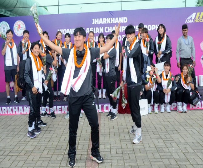 रांची एयरपोर्ट पर हॉकी कोरिया की टीम