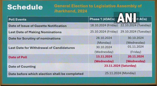 चुनाव आयोग की घोषणा के साथ ही झारखंड में आदर्श आचार संहिता लागू हो गई। बता दें कि झारखंड विधानसभा का कार्यकाल 5 जनवरी 2025 को पूरा होगा।
