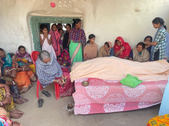 मृतक अनिल टाइगर के काके स्थित अवास गार्गी पर शव रखा हुआ है , शव के पास बैठे परिजन