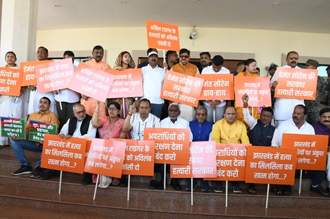 केंद्रीय रक्षा राज मंत्री संजय सेठ रांची में बिगड़ती कानून व्यवस्था एवं भाजपा के वरिष्ठ नेता अनिल टाइगर की हत्या के विरोध में पिस्का मोड़ में भाजपा कार्यकर्ताओं के साथ धरना पर बैठे। उन्हें भी हिरासत में लिया गया।