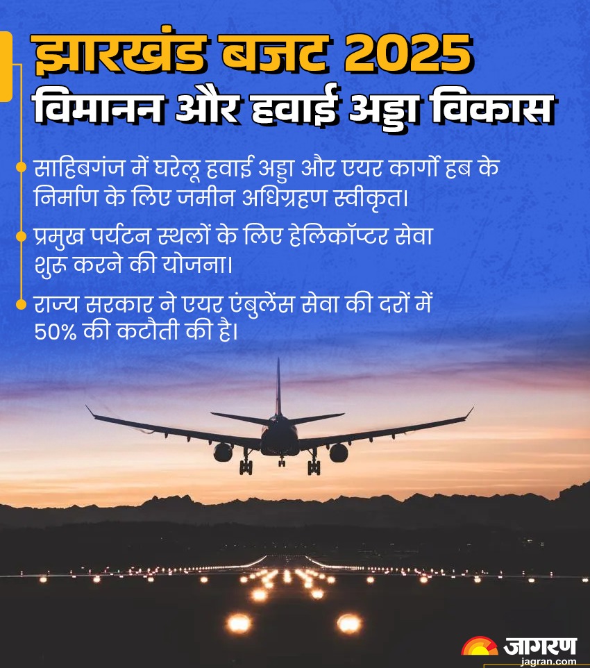 विमानन संरचना को मजबूत करने की इच्छाशक्ति भी सरकार के बजट में दिख रही है। राज्य सरकार ने इसके तहत संताल परगना के साहिबगंज में घरेलू हवाई अड्डा और एयर कार्गो हब के निर्माण की दिशा में कदम बढ़ाए हैं। इन परियोजनाओं के लिए चिन्हित की गई जमीन के अधिग्रहण की स्वीकृति प्रदान की गई है।