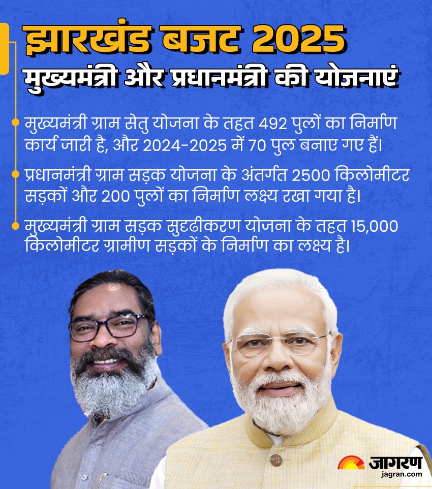 झारखंड सरकार ने वित्तीय वर्ष के बजट में बुनियादी ढांचे के विकास पर ध्यान केंद्रित किया है। 1200 किलोमीटर से अधिक सड़कों का उन्नयन और 10 उच्चस्तरीय पुलों के निर्माण की योजना है। इसमें रेलवे ओवरब्रिज और फ्लाइओवर भी शामिल हैं। इसके अलावा मुख्यमंत्री ग्राम सेतु योजना के तहत 70 पुलों का निर्माण किया जाएगा। साहिबगंज में घरेलू हवाई अड्डा के निर्माण की दिशा में भी कदम बढ़ाए गए हैं।