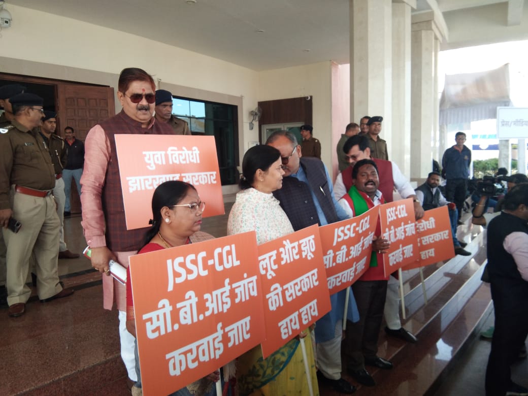 इसके बाद सदन की कार्यवाही शुरू होने के साथ ही भाजपा विधायकों ने सरकार विरोधी नारे लगाए, आसन के समक्ष पहुंचकर भी हंगामा किया। नेता प्रतिपक्ष अमर बाउरी ने कहा कि स्नातक स्तरीय संयुक्त प्रतियोगिता परीक्षा के सारे अभ्यर्थी आंदोलन कर रहे हैं। राज्य सरकार ने कदाचार रोकने के लिए हाल ही में कानून बनाया है। इसके बाद भी इतनी बड़ी चोरी हो गई। लाख - लाख रुपये में प्रश्नपत्र बिके हैं। सरकार इसकी सीबीआई जांच कराए।
