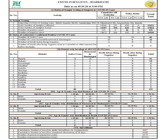 Coronavirus Update: झारखंड में फिर मिले 10 कोरोना मरीज, अबतक 125; जानें ताजा हाल