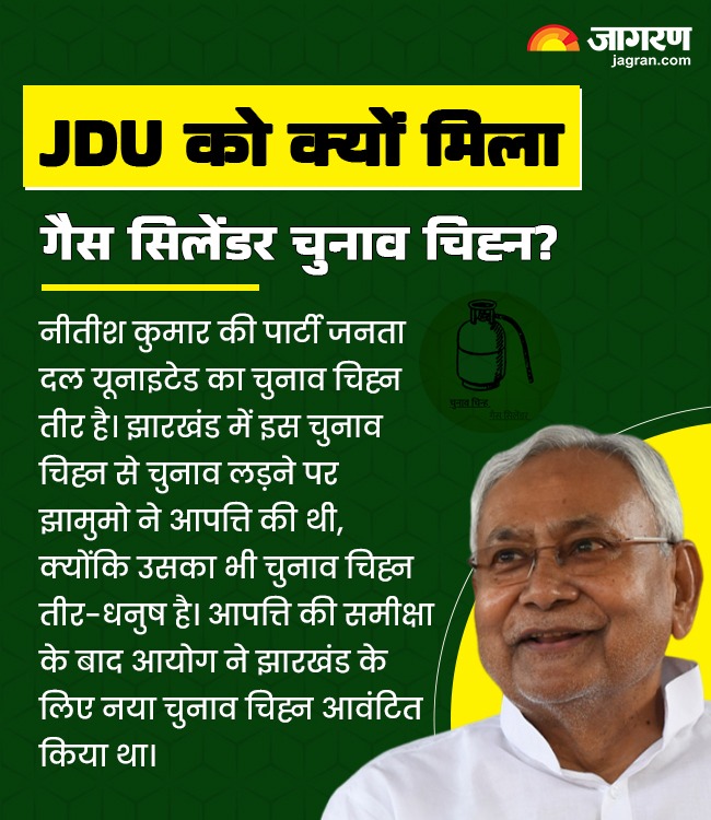 जदयू को झारखंड में विधानसभा चुनाव के लिए गैस सिलेंडर चुनाव चिह्न (JDU Jharkhand Election Symbol) आवंटित किया गया है। इस संबंध में भारत निर्वाचन आयोग का पत्र पार्टी कार्यालय को मिला गया है।