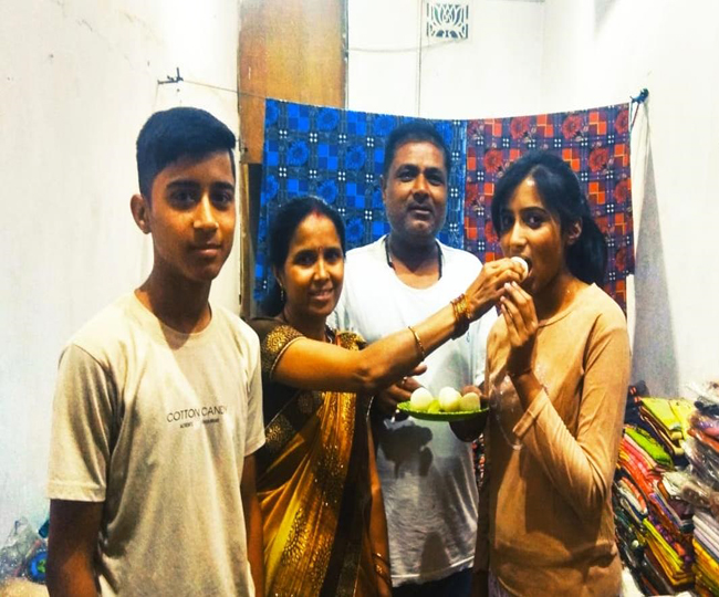 अपने माता-पिता और भाई के साथ कॉमर्स की स्टेट टॉपर अमीषा कुमारी।