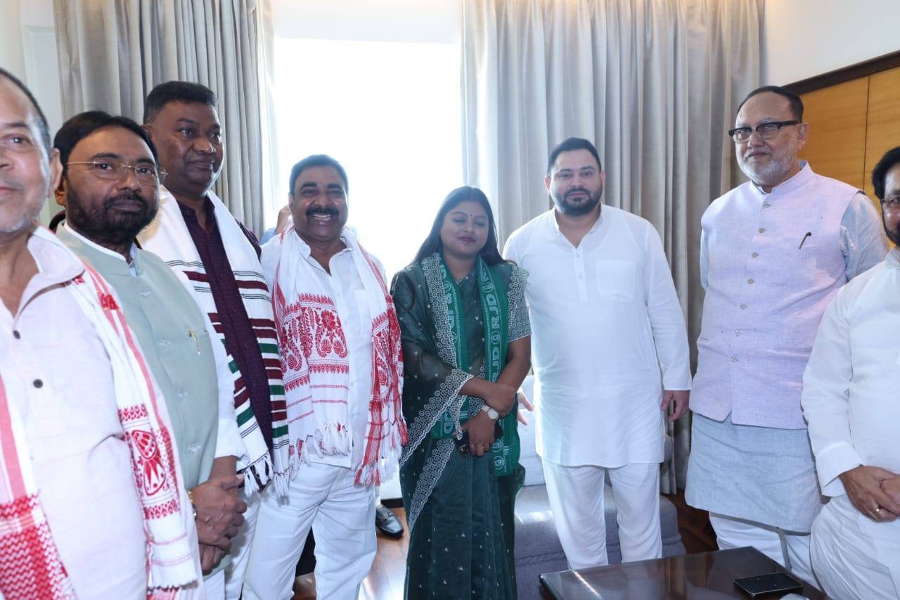 (झारखंड के पार्टी नेताओं से मिलते तेजस्वी यादव)