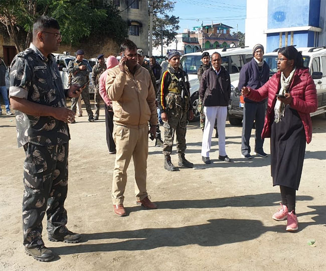 लोहरदगा में हिंसा-बवाल के बाद शहर के बरवाटोली में तैनात तीन-तीन एसपी। बाएं से मनोज रतन चोथे, नौशाद आलम और सुजाता वीणापानी।