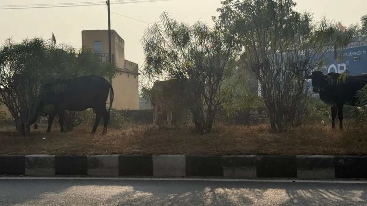जानवर चरने के लिए डिवाइडर पर चले आते हैं