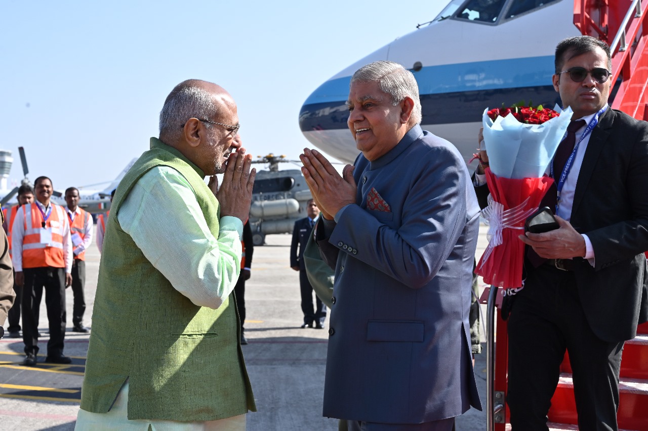 राज्यपाल ने पुष्प देकर किया उपराष्ट्रपति का स्वागत