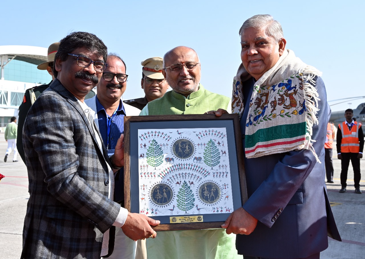 डिजिटल डेस्क, रांची। उपराष्ट्रपति जगदीप धनखड़ रविवार को बिरसा मुंडा की धरती पर पहुंचे। इस दौरान रांची एयरपोर्ट पर उपराष्ट्रपति की स्वागत में मौजूद मुख्यमंत्री हेमंत सोरेन और राज्यपाल सीपी राधाकृष्णन ने उनका अभिनिंदन किया।