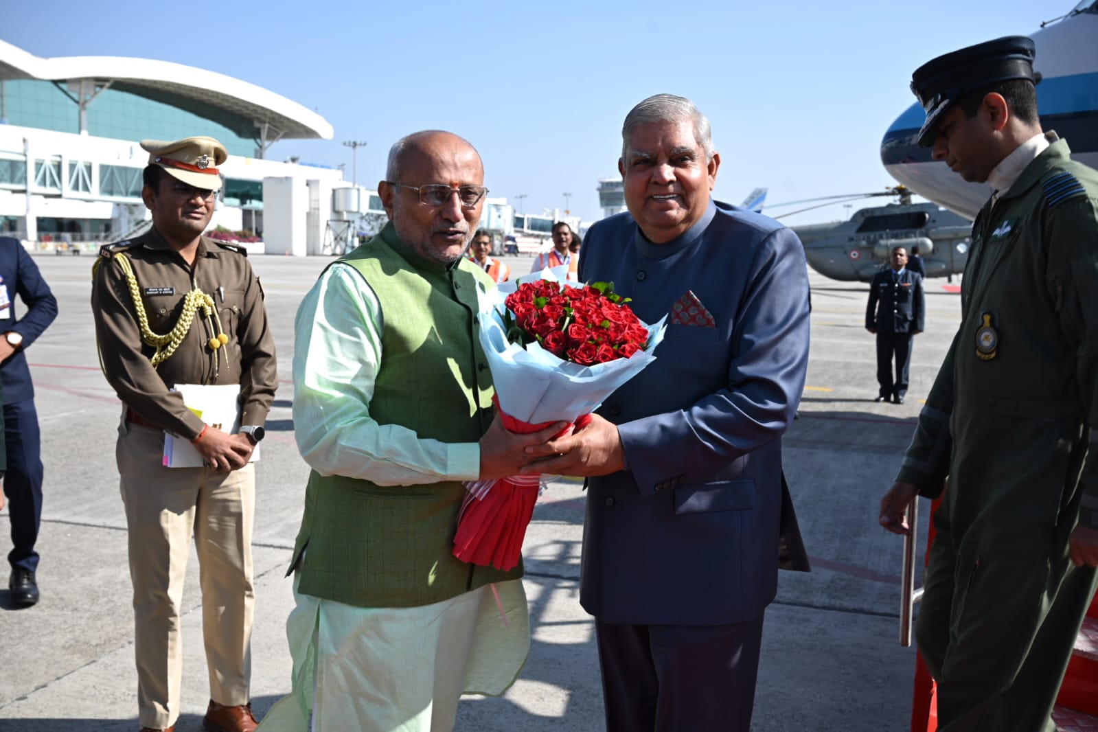 राज्यपाल ने जगदीप धनखड़ को किया हाथ जोड़कर स्वागत