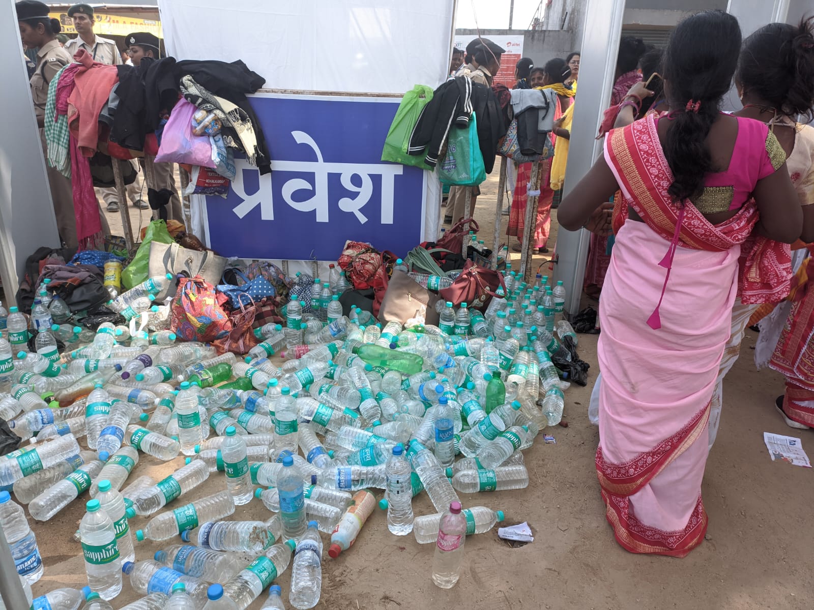 यहां पुलिस किसी को भी पानी का बोतल और बैग तक अंदर तक नहीं ले जाने दे रहे हैं। सभा स्थल तक जाने के लिए लोगों की कतार लगी हुई है। इतना ही नहीं, सभा में काला शर्ट बैग की मनाही है। काली जर्सी भी उतार कर पुलिस रख ले रही है।