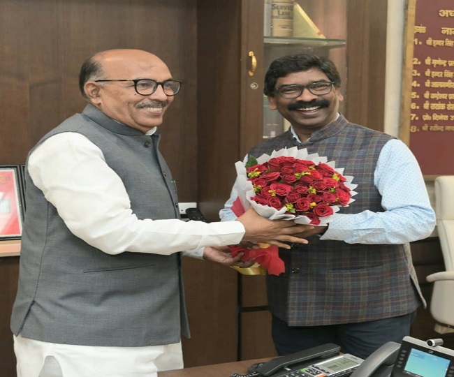 रांची, राज्य ब्यूरो। झारखंड विधानसभा का शीतकालीन सत्र आज से शुरू हुआ है। इस दिन सत्र शुरू होने से पहले झारखंड विधान सभा स्थित अध्यक्ष कक्ष में स्पीकर रबीन्द्रनाथ महतो को फूलों का गुलदस्ता भेंट कर मुख्यमंत्री हेमंत सोरेन ने उनका स्वागत किया।