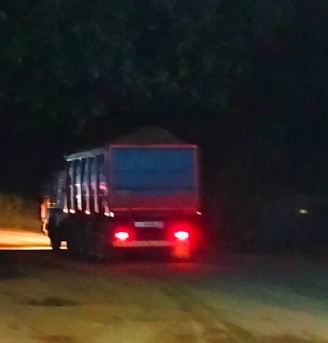 रात के अंधेरे में किसी रोकटोक के बालू ढ़ोते ट्रक।