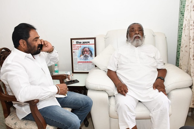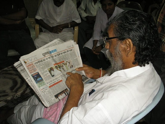 दैनिक जागरण अखबार की प्रति पढ़ते झारखंड के पूर्व मुख्यमंत्री शिबू सोरेन।