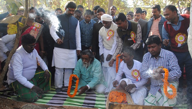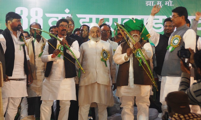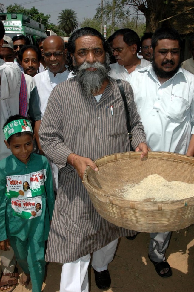 लोगों को संबोधित करते झारखंड के पूर्व मुख्यमंत्री और झारखंड मुक्ति मोर्चा के संस्थापक शिबू सोरेन।
