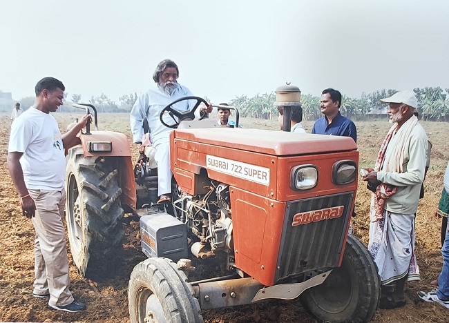 बोकारो चीराचास स्थित फार्म हाउस में ट्रैक्टर चलाते दिशोम गुरु शिबू सोरेन।