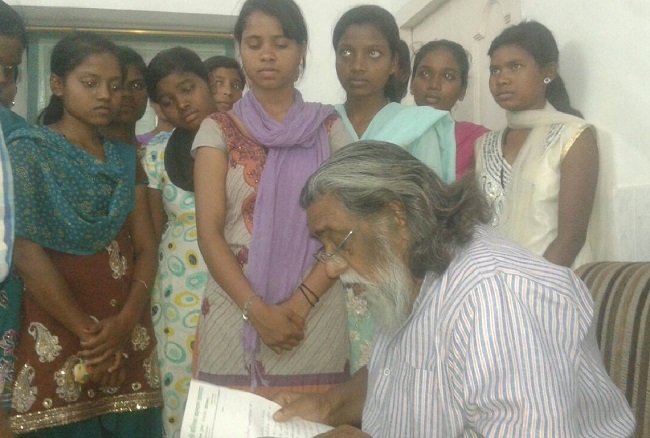 महिलाओं की समस्या सुनते शिबू सोरेन।