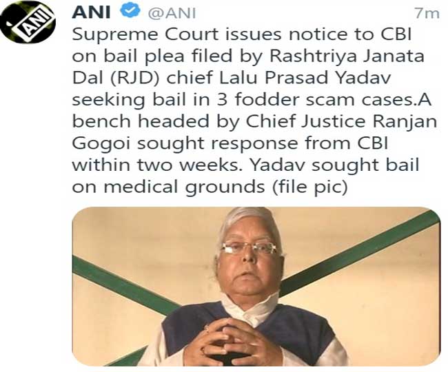 लालू प्रसाद यादव की जमानत याचिका पर सुप्रीम कोर्ट ने सीबीआइ से मांगा जवाब